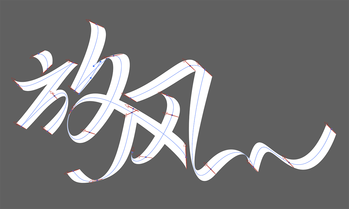 尝试后发现这个插件好适合做体现空间感的字,调整画笔的角度和大小即可在一条路径上产生不同的立体效果,配合路径的微调就可以呈现出生动的飘带形态~
