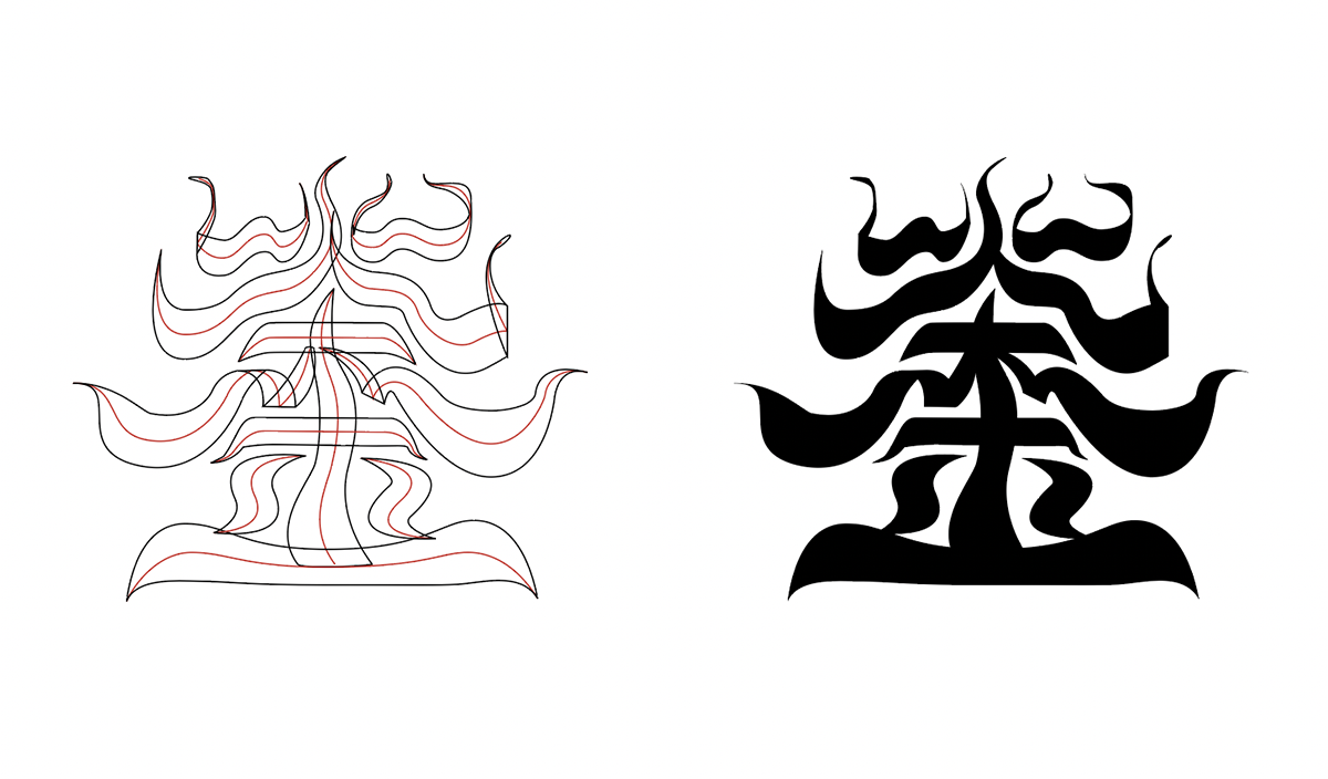 在搭建基础字型时,想要更纯粹的图形特征,便选择用一些装饰线来表达部分结构,以及最终保留了一些不完美的、生动的部分。