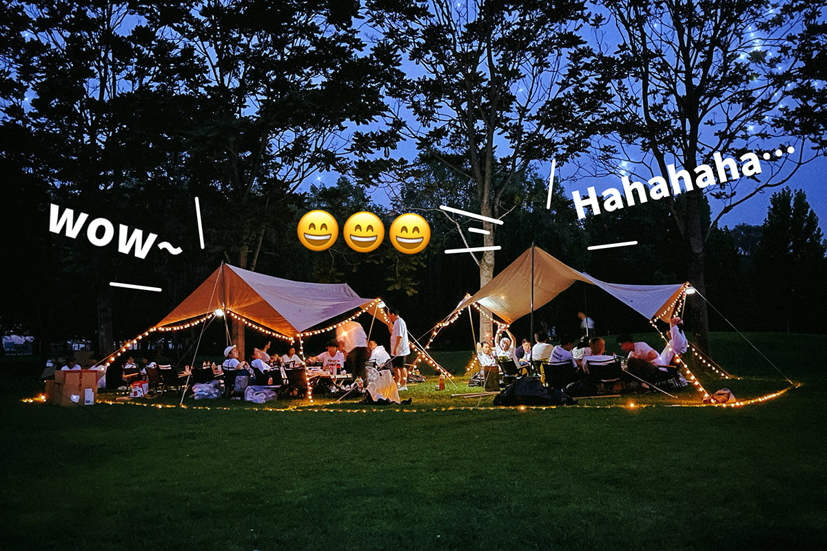 赛后团伙们在草坪上烧烤找乐子,集体享受着难得的「头脑平静」时刻,直到夜深。