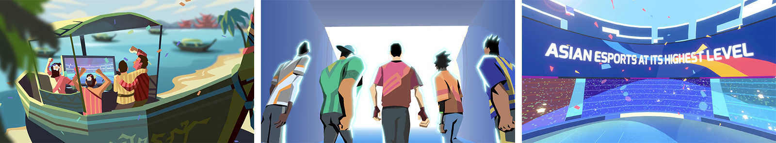 团队对亚洲五大区的自然文化特点进行了深入研究与提炼,创作出独具特色的场景和人物。短片中也覆盖到几大主要游戏赛事,电竞迷们一定能从中发现熟悉的游戏细节,也能收获惊喜。