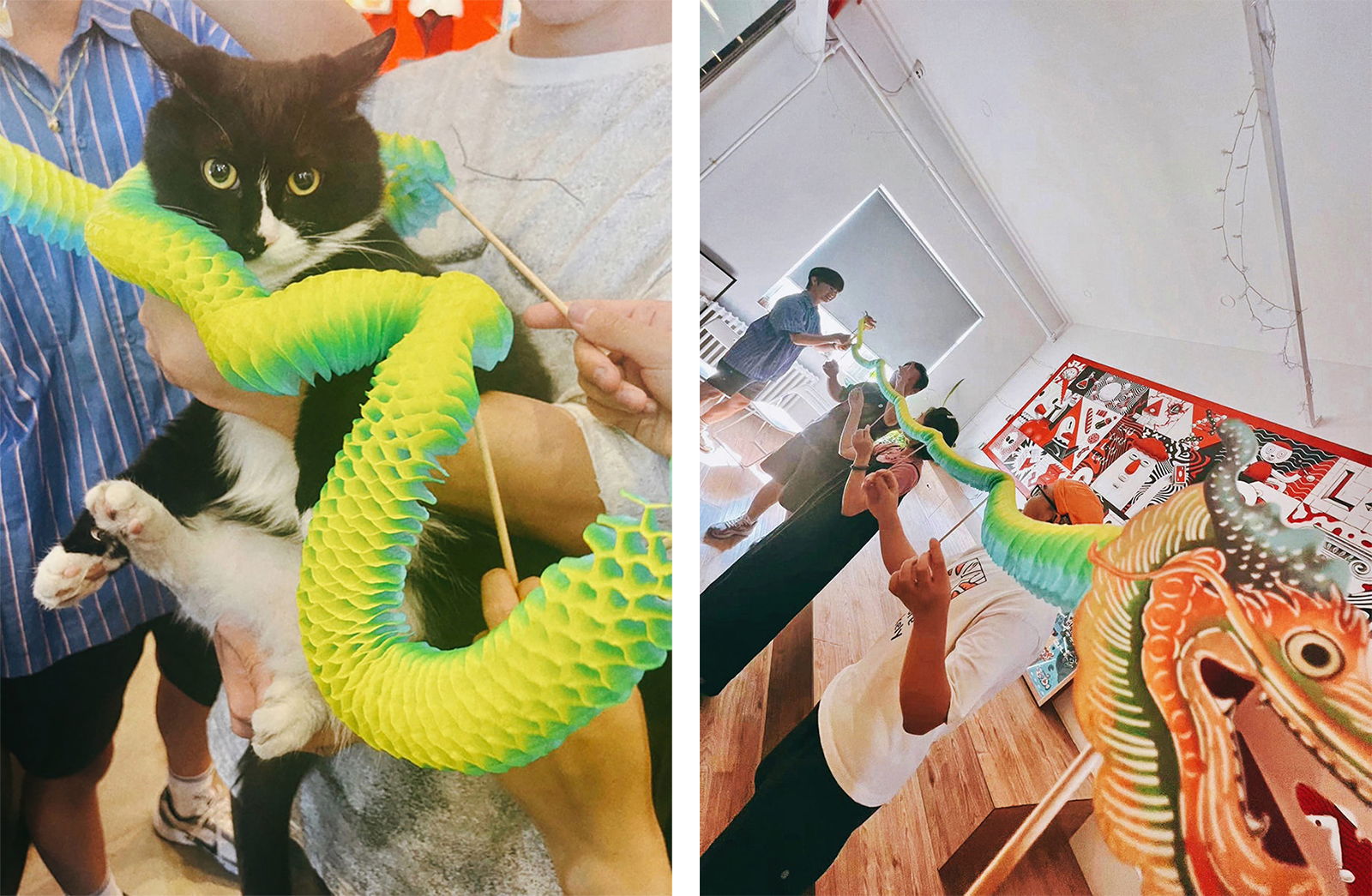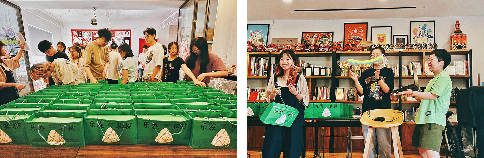端午节:人手一份粽子礼盒,还附赠手工折纸舞龙玩具。被创作欲无处安放的团伙们凑一块儿拼成一条长龙舞了起来,还化作 丑丑 的披风(跟瞳色超搭的!),玩得不亦乐乎!