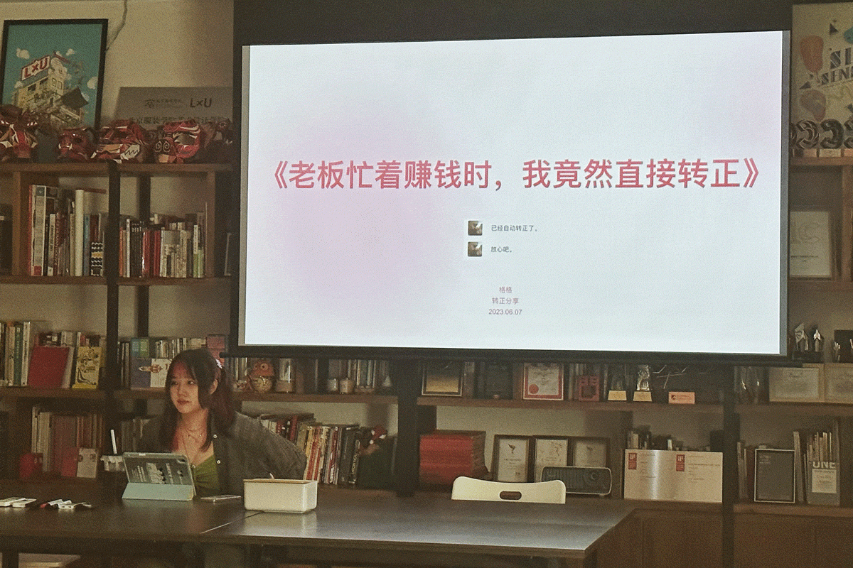 杨姐,财务主管。当第一句话「本人目前已有 25 年财务工作经验」赫然出现时,团伙们立刻肃然起敬,毕竟在场有的人出生还不到 25 年!随后杨姐凭借简单的 PPT 满满的信息量征服全场,凭实力为团伙输入不可或缺的相乘能量~