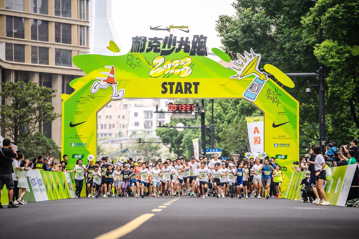在 9 月初的上马 Speed X 系列赛「2023 耐克少儿跑」中,我们以「一家 一队」为主题,通过能够合二为一的奖牌设计,直观有趣地体现「是由家长和小朋友一起完成这场比赛」的信息点,家长和孩子都是最佳选手。