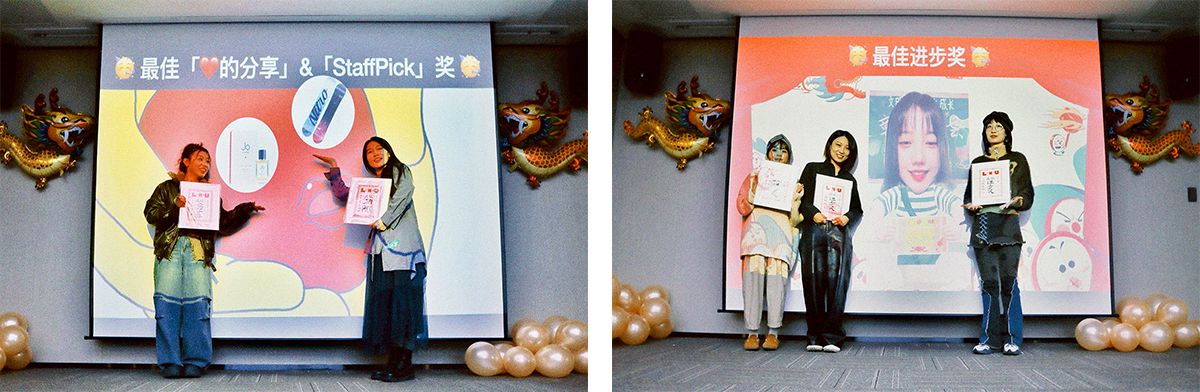 今年我们选出的多面灵 looong 体有:用自己的经历传递爱和力量的「最佳爱的分享」丑丑 和引经据典为大家打开字体创意思路的「最佳 StaffPick」御寒;进步速度嗖嗖快专业能力提升巨大的「最佳进步奖」欣雨 & 淼淼 & 格格;年度参与项目数量最多并认真对待的「团伙劳模」龙哥;年度入职的新人中表现最突出未来可期的「最佳新人奖」畅畅 & 小阳 & 聪聪 & Joey。