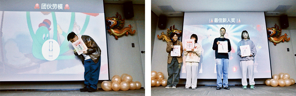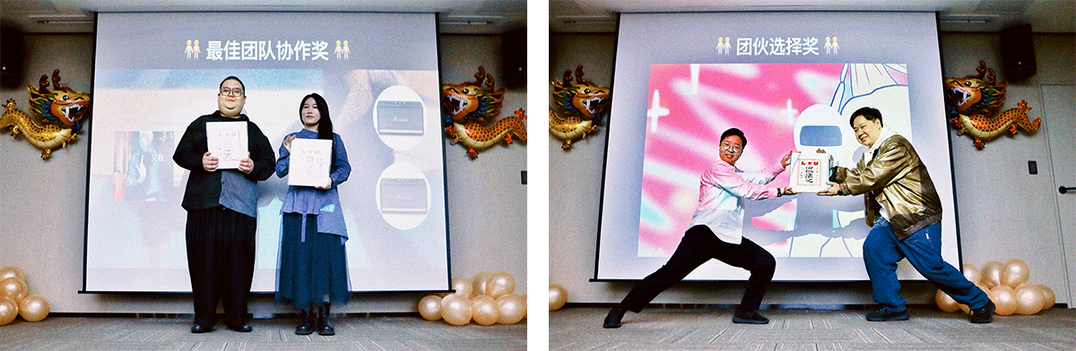 用出色的工作能力为各个项目添光增彩的「最佳团队协作奖」御寒 & 帆帆;跟春晚最受观众喜爱奖同等级别、团伙们一票票投出来的「团伙选择奖」龙哥;去年倾情演绎上海打工双城故事的「最佳担当奖」双女主 圆圆 & 阿锟!