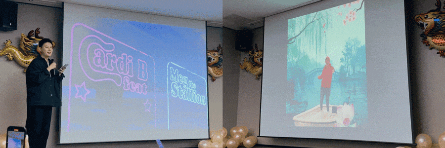 首次登台的 羊 带来卡老师的说唱歌曲,将本次年会尺度拉满;嗯?现在表演节目都不自己动了?艺术创作中心全员 利用 AI 实现神神奇奇怪怪的齐舞;既然有鼓,那得来点儿传统艺能击鼓传花 i 人不紧张版「击鼓传 looooong 华富贵」,传到的都有奖。