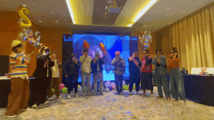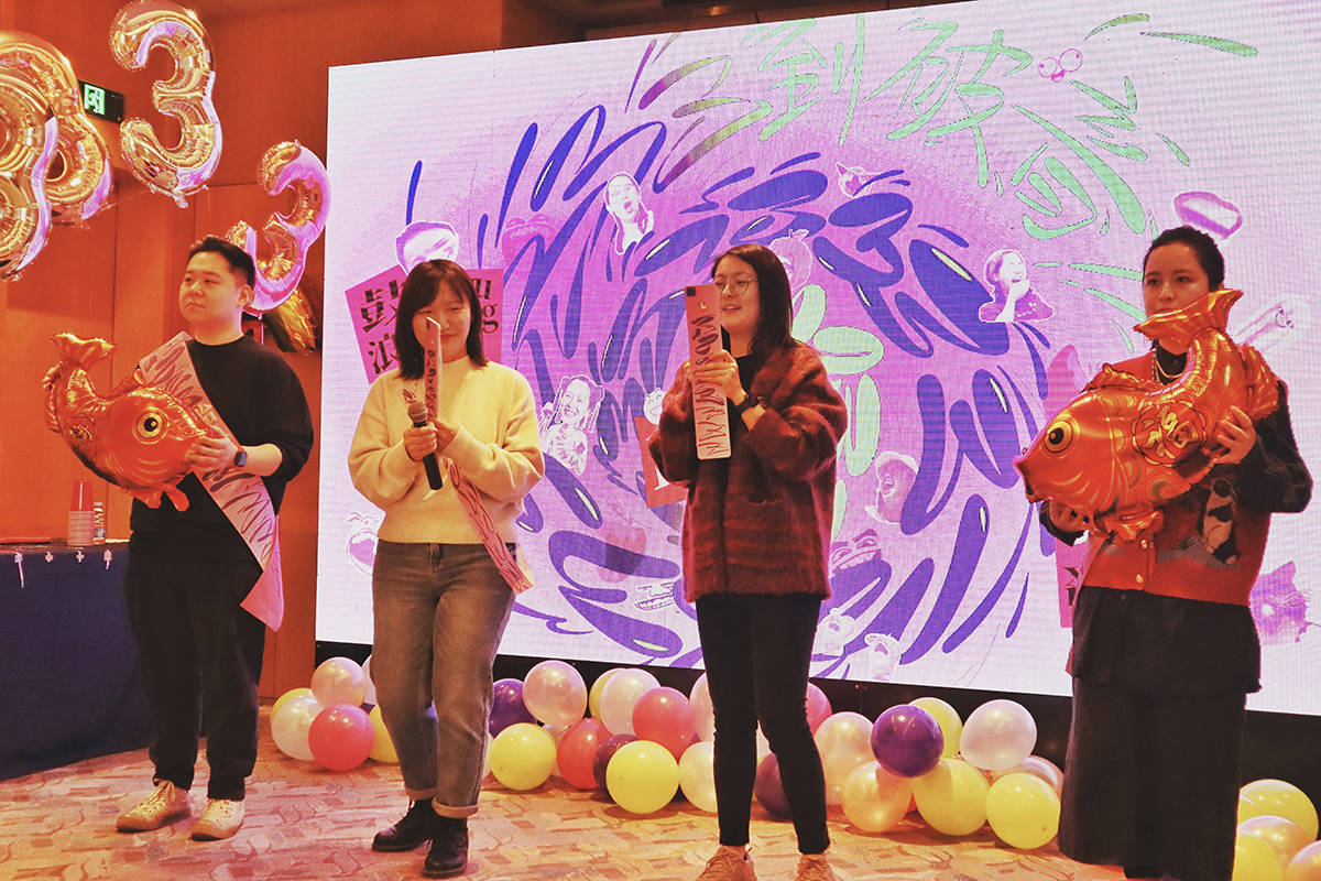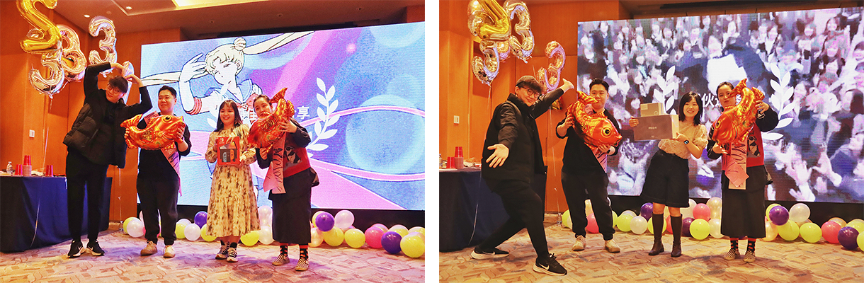 年会中还穿插了各式节目和互动环节,只为把众团伙们的 10° 微微笑、露八颗牙大笑、前俯后仰狂笑一网打尽!