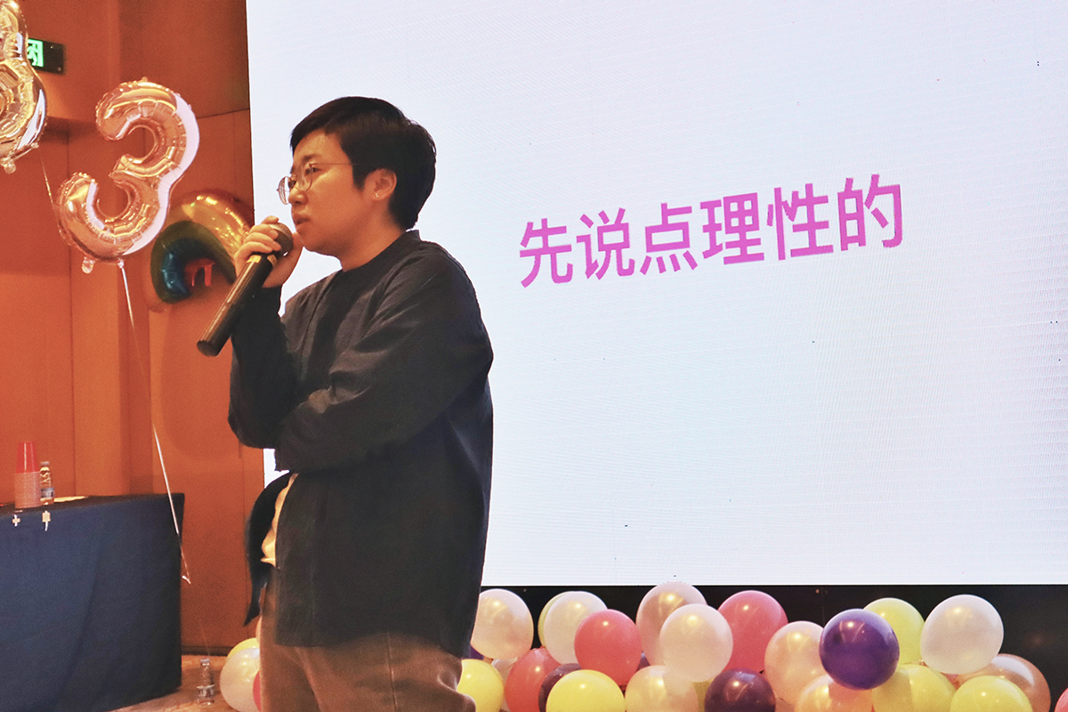 「哈彩屁」家荣 的 krump 引得粉丝失控尖叫喊出「一年四季我们只穿加绒」的口号;「笑帆了」延续去年才艺,帆帆 再次发布一支全新个人单曲,还有营销创意中心全员出镜加持;「唱的比说的好笑」由近期加入的团伙 昊昊 奉上以乘 solo 首秀;品牌设计中心作为守擂员带来「撒币嘻嘻」小游戏系列,结果全员大翻车挑战者喜笑眉开;以及最后艺术创作中心送上「哈哈哈哈哈哈彩虹屁」大合唱,将本届年会在《明天会更好》中推向高潮~