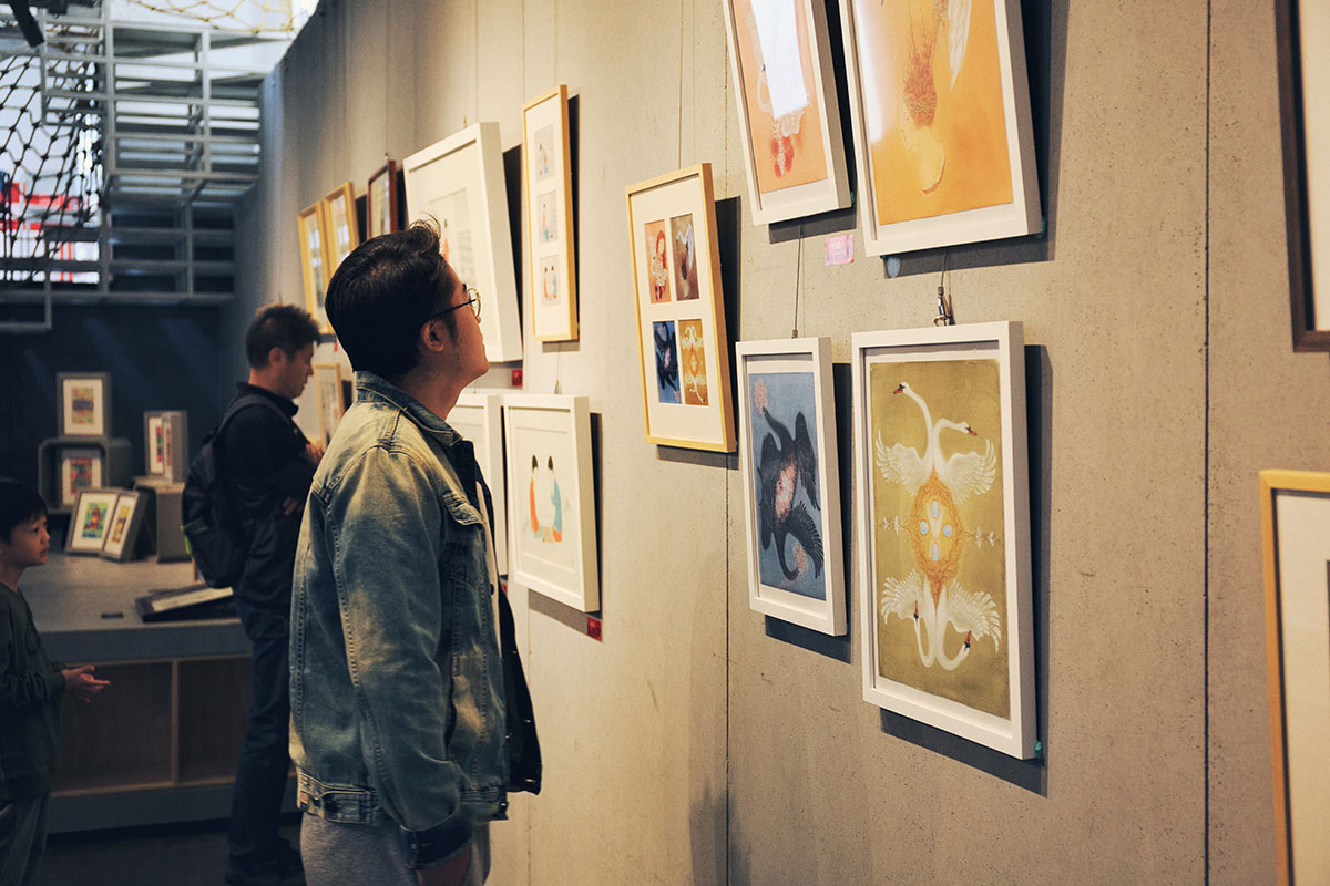 ▲ 现场同时展出插画原作和邮票设计作品