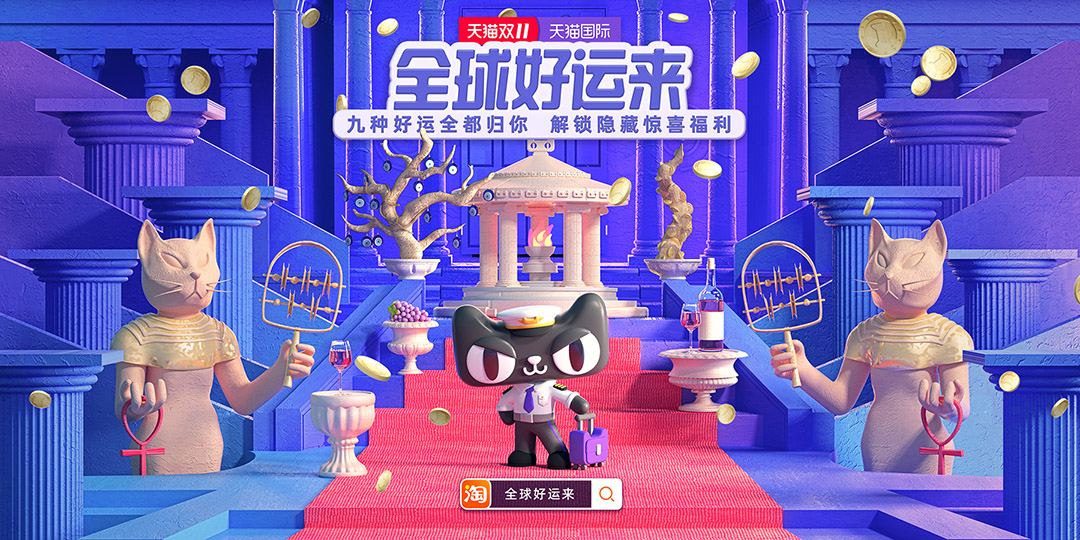 今年双十一我们为天猫国际打造了极致事件「全球好运来」,帮天猫国际机长把全世界的好运和妙物带到中国。而作为消费者的你,动动手指就能得到全球的好运加持,还能解锁双十一「隐藏会场」,承包你的衣食住行玩乐美!