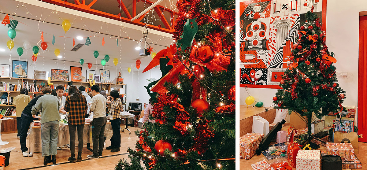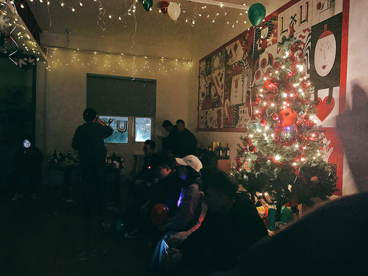 又到一年一度跟我们十分撞色的圣诞节。圣诞树与客厅大墙画浑然天成,毫无违和。而树下堆满的,是团伙们互相为对方准备的小礼物和便衣圣诞老人 [Levi] 准备送出的大礼物。