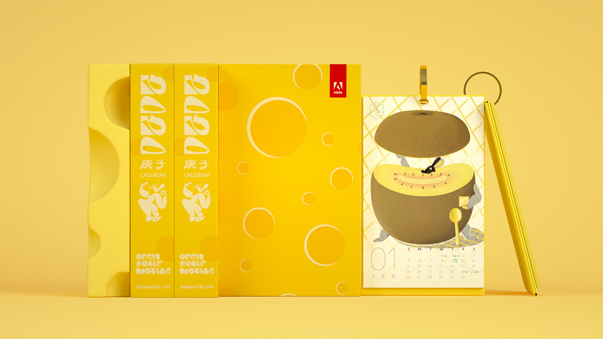 和 Adobe 的缘分从怪诞集盒开始,每年年末都由 LxU 负责设计一款联名日历。2020 年是第三个年头了。