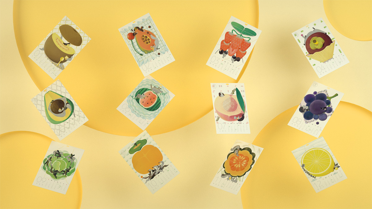 结构上也有创新。日历从后往前翻,时间越过越厚实。而且每张蔬果插画中间都有一部分可以被撕下,一年过完则会形成层层叠叠的镂空洞,仿佛被吃掉的时光。算是设计师一个有趣的小心思。