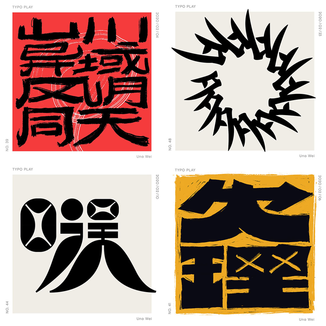 疫情期间,[Una] 也没停止字体设计练习。放送一些她的习作。↓(更多作品在她的 Instagram:unawei,持续更新中)